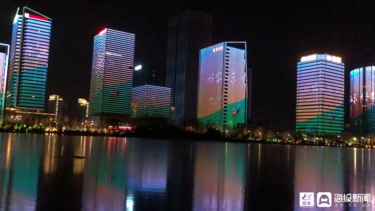 臨沂城市地標點亮“好品山東”主題燈光秀。