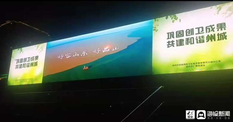 濱州城市地標點亮“好品山東”主題燈光秀。