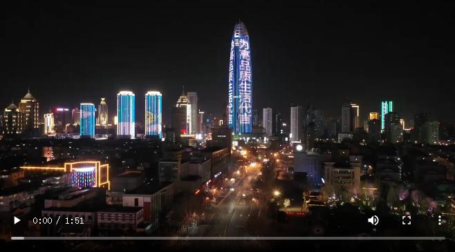 濟寧城市地標點亮“好品山東”主題燈光秀。