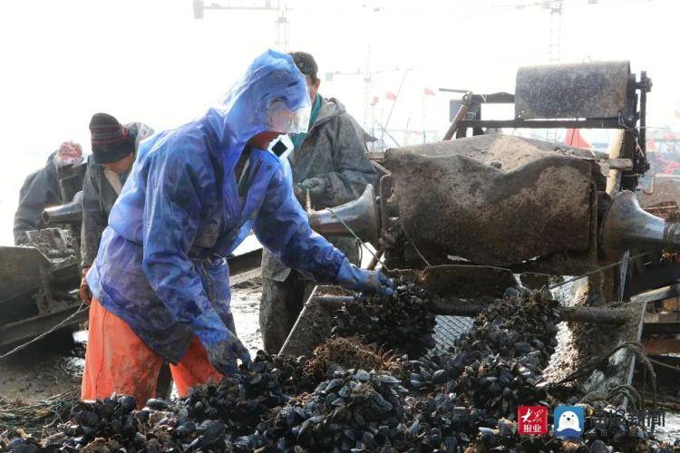 又是一年海虹肥美時,2月10日,大眾網(wǎng)·海報新聞記者驅車來到嵐山漁港,沉寂的碼頭又進入了繁忙的狀態(tài),海虹清洗機器不停運轉,卸貨、沖洗、稱重、裝袋……新鮮肥美的海虹隨即裝車銷往全國各地。