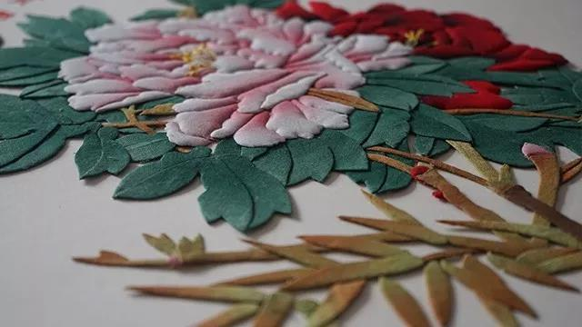 就全國而言,有著類似堆繡的不僅僅是菏澤一處,但是,它們有的是只是在關鍵部位用布制作,其余部分則是畫上去的,而曹州堆繡區別于它們最大的不同則是,整幅作品全部都是用布做成,立體感非常強。