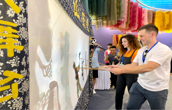 來(lái)自埃及的網(wǎng)紅博主海靈(Asmaa Mostafa)表示:“這是我第一次來(lái)到山東,此行我看到了很多有趣的非遺展示,最讓我印象深刻的是泰山皮影。傳承人大師不但表演得非常精彩,還給我們講解了皮影的歷史、制作技藝、樂(lè)器演奏等,還邀請(qǐng)我們親自體驗(yàn)皮影表演,讓我對(duì)中國(guó)文化有了更深入的了解。”