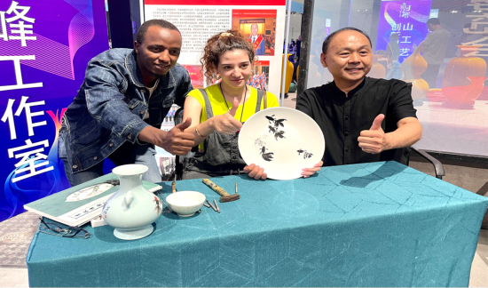 在憑借特色燒烤火遍全網(wǎng)的“新晉網(wǎng)紅城市”淄博,國(guó)際友人們了解到淄博除了“燒烤之都”這張金名片,也是中國(guó)著名的瓷都,是中國(guó)最早生產(chǎn)和使用陶器的地區(qū)之一。國(guó)際友人們沉浸式打卡淄博國(guó)際陶瓷博覽會(huì),飽覽國(guó)內(nèi)外精美陶瓷、琉璃制品的同時(shí)與魯派內(nèi)畫(huà)、刻瓷等非遺傳承大師互動(dòng)學(xué)藝,近距離感受淄博工匠的高超技藝。