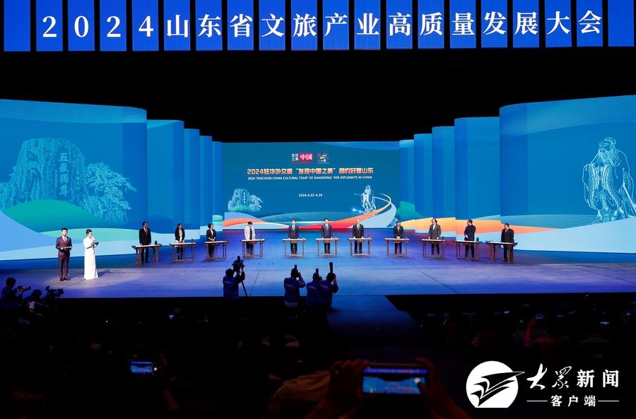 開幕式上,2024駐華外交官“發現中國之美”山東首發活動啟動,“泰山娟姐”等網絡達人分享“我眼中的山東”,“好客山東·見識齊魯”研學旅游品牌發布。山東省文化和旅游高質量發展戰略合作簽約儀式舉行,18個重點文旅項目簽約。與會領導和嘉賓觀看了大型室內旅游演藝《國秀·瑯琊》。