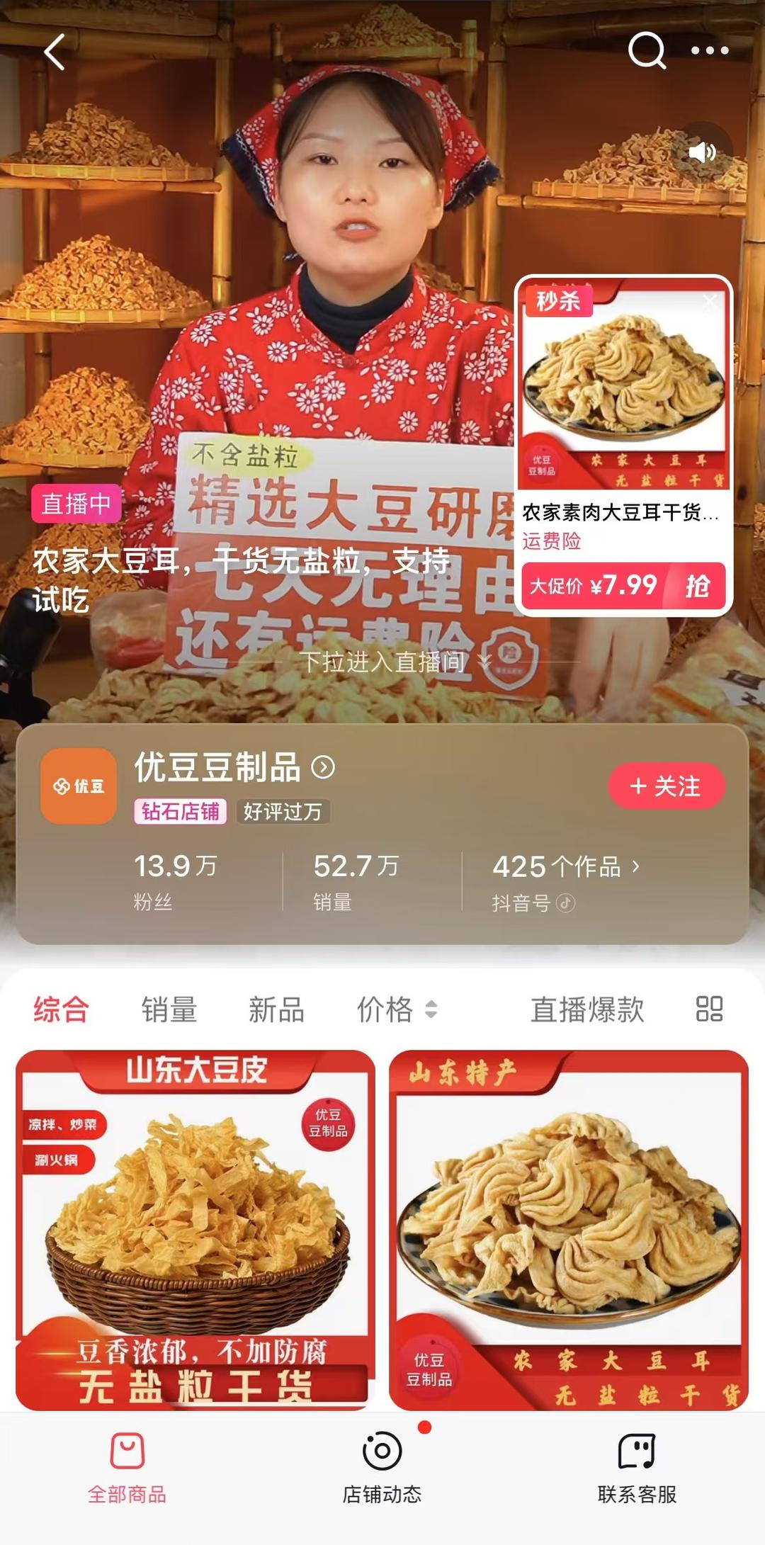 棗莊市山亭區(qū)燦燦豆制品廠直播間。