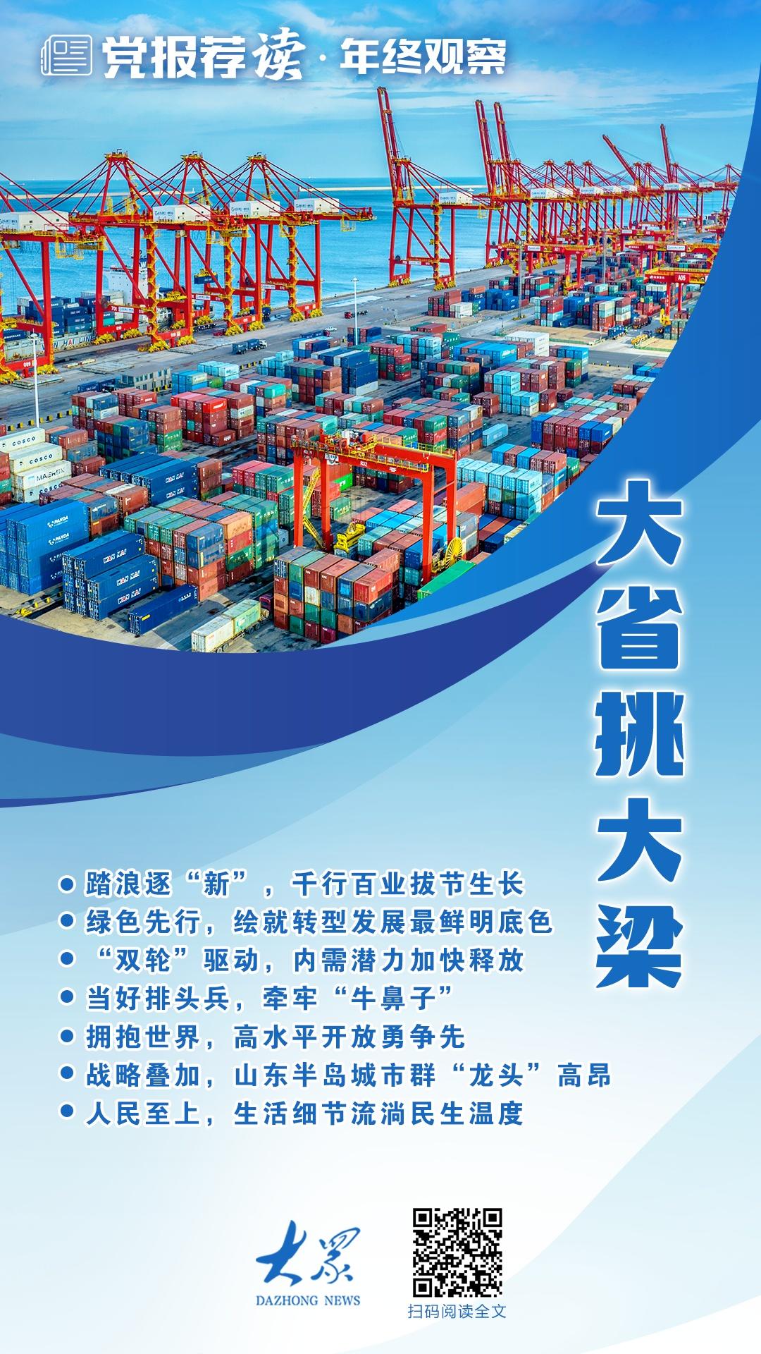 12月18日—24日,大眾日?qǐng)?bào)推出7篇重磅述評(píng),從新質(zhì)生產(chǎn)力穩(wěn)步發(fā)展、綠色低碳轉(zhuǎn)型提速推進(jìn)、擴(kuò)大有效投資大力提振消費(fèi)、在進(jìn)一步全面深化改革上當(dāng)好排頭兵、推進(jìn)高水平對(duì)外開放、深入落實(shí)重大國家戰(zhàn)略、民生保障扎實(shí)有力等7個(gè)方面,展現(xiàn)2024年山東經(jīng)濟(jì)社會(huì)發(fā)展的新作為、新成效,解碼山東何以“挑大梁”。