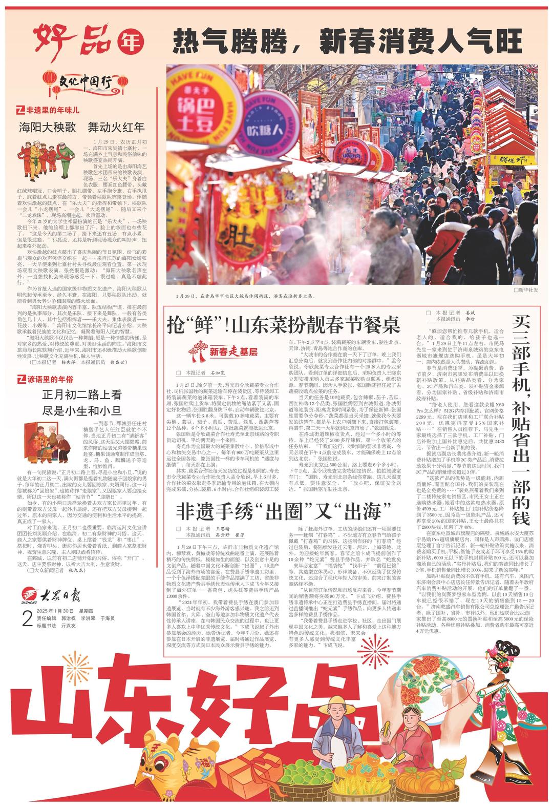 編者按:辰龍辭歲,巳蛇報春。春節期間,齊魯大地洋溢著喜慶祥和氛圍。大眾日報·大眾新聞記者深入基層一線、百姓生產生活,聚焦歸鄉游子、萬家團圓、非遺民俗、干事創業……采集各地民風,寫實百姓故事,感受收獲滿滿的幸福年、四海同慶的團圓年、活力四射的文化年、人勤春早的實干年……充分展現我省經濟社會發展的顯著成就,以及各地民眾祥和生活。敬請關注。