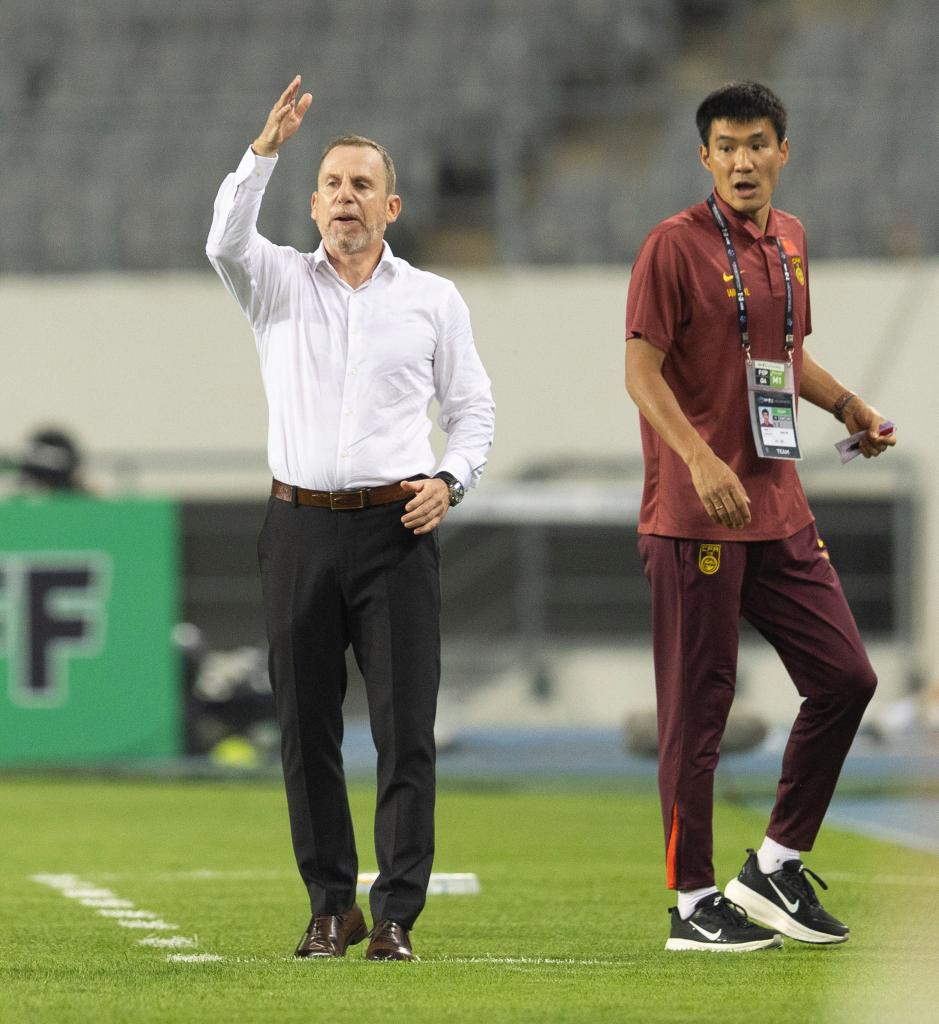 7月7日,中國隊代理主教練德揚·久爾杰維奇(左)在場邊指揮。新華社發(全休相 攝)