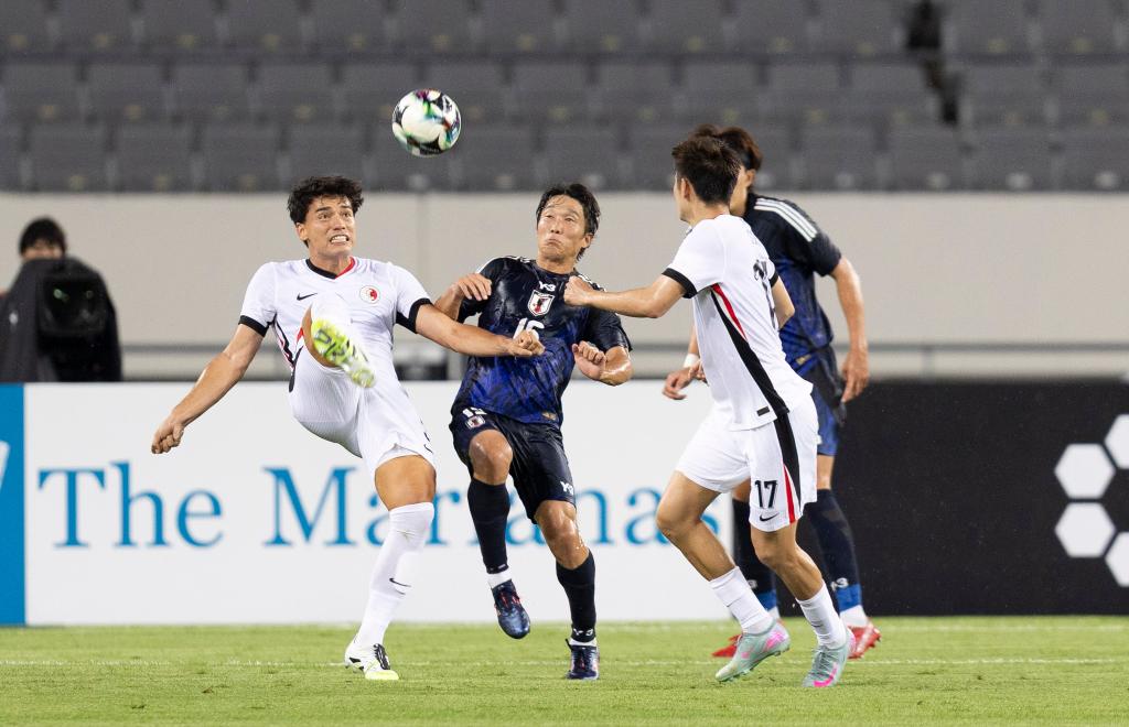 開場僅4分鐘,日本隊(duì)前鋒熱爾曼·良一記側(cè)身勾射破門,并隨后在不到30分鐘內(nèi)完成“大四喜”。上半場第20分鐘,日本隊(duì)稻垣祥遠(yuǎn)射攻入一球。易邊再戰(zhàn),中國香港隊(duì)安永佳第59分鐘頭球破門扳回一城。補(bǔ)時第四分鐘,日本隊(duì)中村草太再進(jìn)一球?qū)⒈确侄ǜ裨?:1。