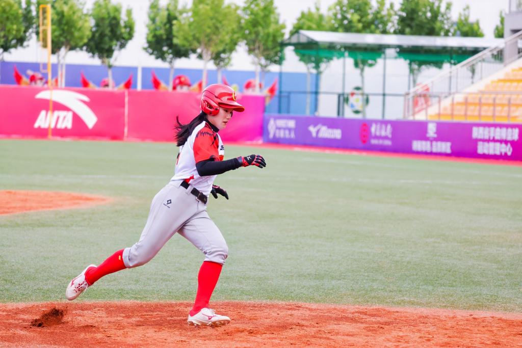 第七局,菲律賓隊率先取得1:0領先。中國隊換上投手魏語辰,沒讓菲律賓隊再擴大領先優勢。來自西安體育學院的李欣甜替補上場,她敲出一記安打,搶進一壘,隨后隊友犧牲觸擊將她送入二壘。在隊友兩出局的艱難局面下,顏思語一記安打將李欣甜送回本壘扳平比分的同時,也讓自己進入一壘。