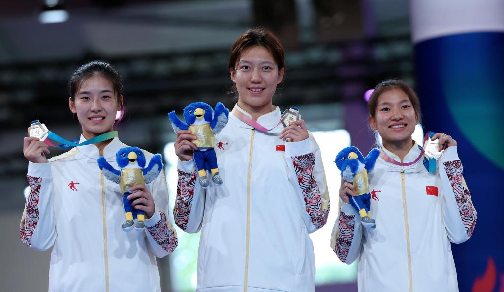 跆拳道也在當日結束全部比賽,中國隊在該項目上共獲4金2銀3銅。在跆拳道女子團體競技比賽中,由郭清、穆文喆、邢佳妮組成的中國隊延續強勢表現,從16強賽一路以三場2:0橫掃晉級,并在當日決賽中以同樣比分戰勝韓國隊,奪得冠軍。