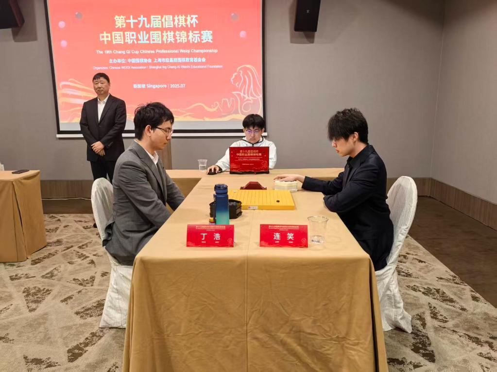 另一場較量中,丁浩九段執黑不計點勝連笑九段,這盤棋雙方在前半盤勢均力敵,在激烈的劫爭中錯進錯出。連笑沒能把握住稍縱即逝的機會,又因為延時被罰了兩點。眼看白棋的實空難以追上,連笑中盤認輸。