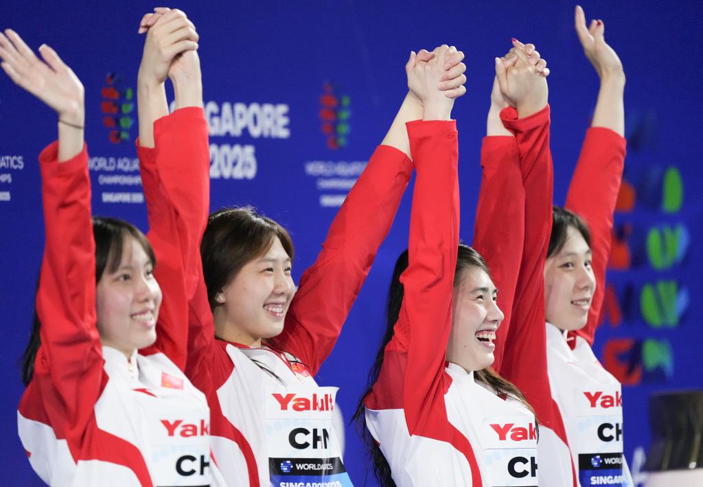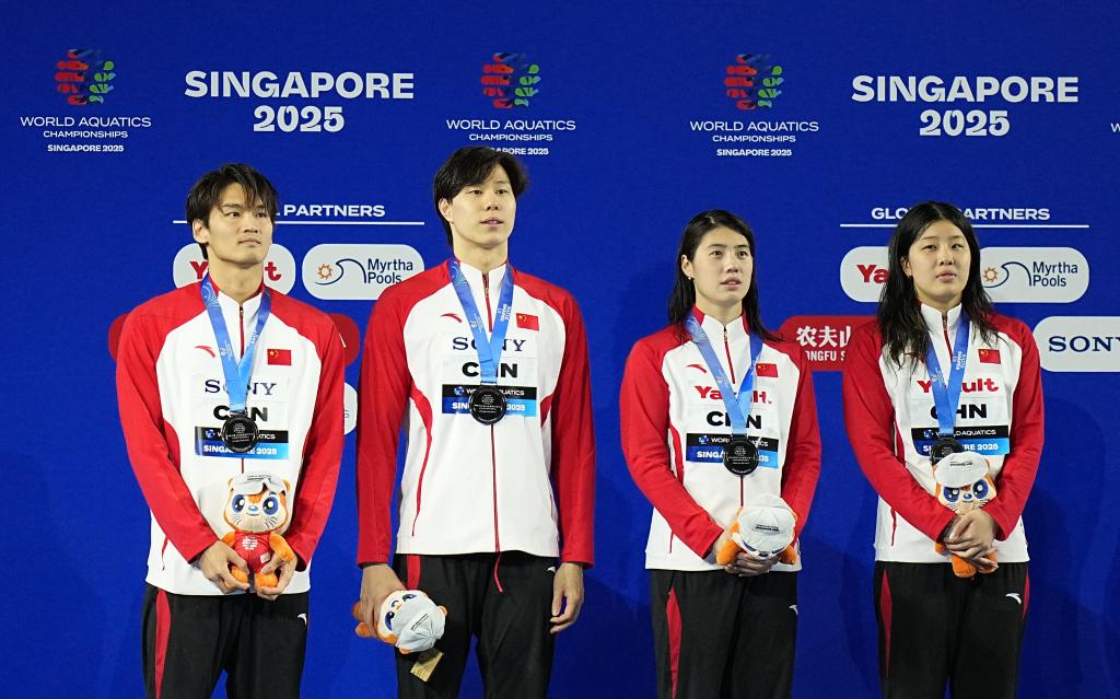 新華社新加坡8月4日電(記者夏亮、周欣、李嘉)3日晚,新加坡游泳世錦賽最后一場比賽,張雨霏和隊友在女子4×100米混合泳接力比賽中奪得銅牌。