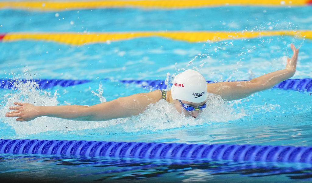 7月28日,張雨霏在2025年世界游泳錦標賽游泳女子100米蝶泳決賽中。新華社記者 夏一方 攝