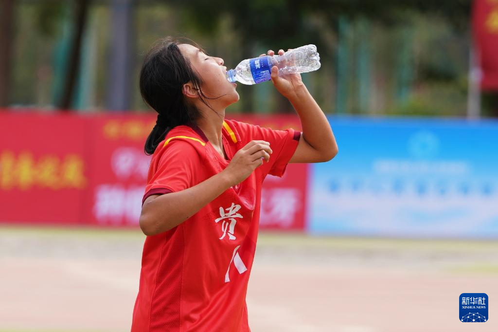 8月5日,貴州代表隊的一名選手在比賽間隙補水。