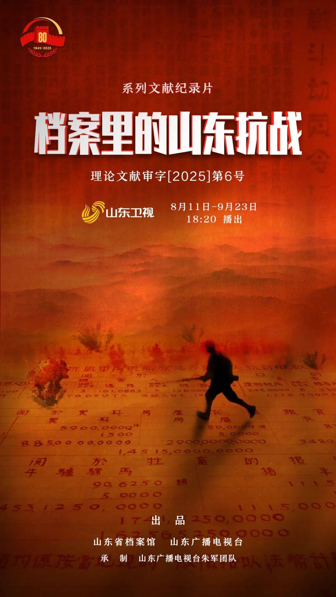 在紀念中國人民抗日戰爭暨世界反法西斯戰爭勝利80周年的重要歷史時刻,由山東省檔案館和山東廣播電視臺共同出品的系列文獻紀錄片《檔案里的山東抗戰》將于8月11日至9月23日在山東衛視播出。
