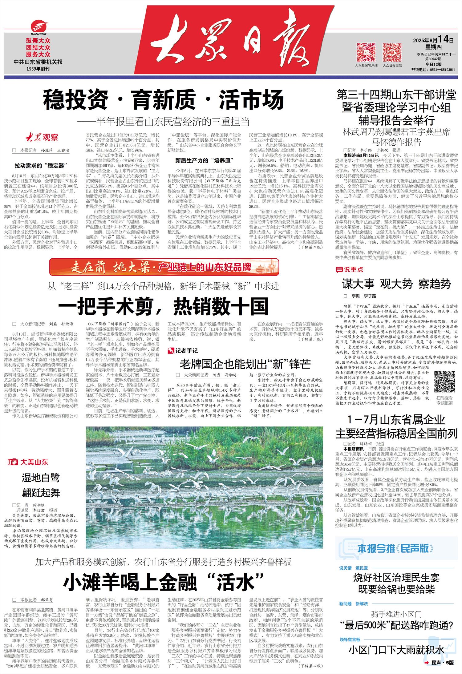 以前,作為生產手術剪的首道工序,落料可沒這么輕松。新華手術器械研發工藝總監徐先凈感慨,沒有機械臂和送料機的時候,全靠手動搬料操作沖床,一天下來得搬1噸料,勞動強度大,而且藏著安全隱患。如今,智能系統的應用顯著提升了生產效率。從“人力密集”到“智能高效”的轉變,正是山東制造以創新驅動轉型升級的縮影。