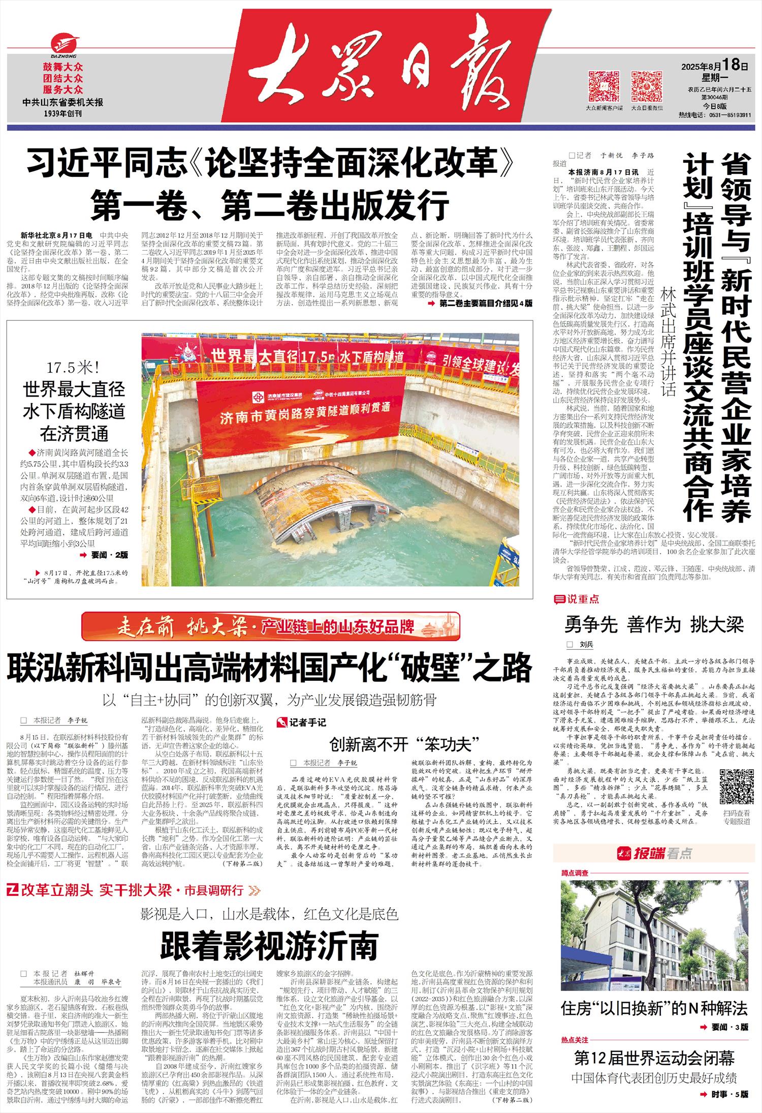 作者: 來源: 大眾日報 01版 發表時間: 2025-08-19 08:44