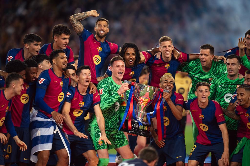 2025年5月18日,巴塞羅那隊(duì)球員慶祝奪冠。新華社發(fā)(胡安·戈薩攝)