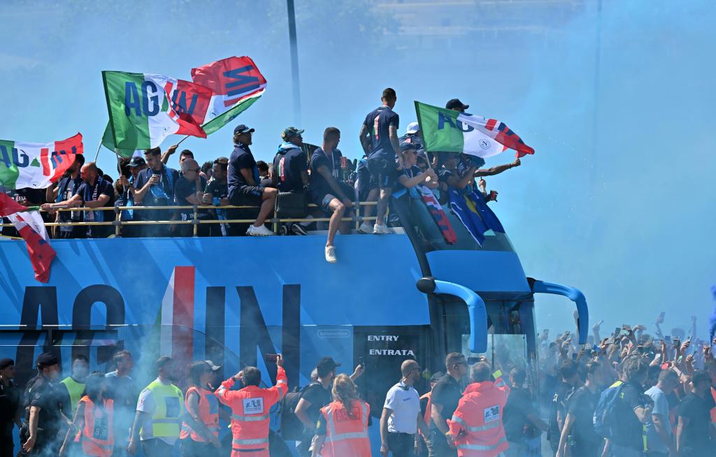 5月26日,意甲那不勒斯隊(duì)在意大利那不勒斯舉行冠軍巡游慶典,慶祝奪得2024-2025賽季意甲聯(lián)賽冠軍。新華社發(fā)(阿爾貝托·林格利亞攝)