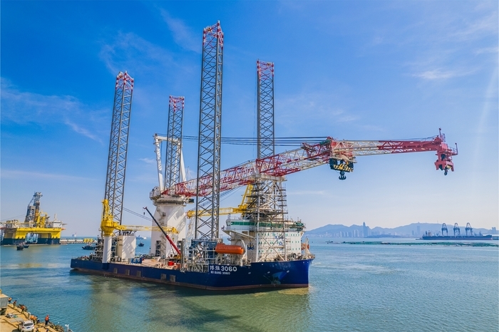 煙臺中集來福士海洋工程有限公司自主設計建造了首艘“博強3060”系列2200T自升式風電安裝船,該船是我國目前唯一能夠承運整根塔筒、滿足20兆瓦級風機安裝需求的新一代風電安裝船,在作業水深、甲板可變載荷、起重吊裝能力等性能方面都是“全國之最”。