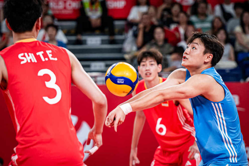 圖為中國隊球員在比賽中接球。圖片來自國際排聯Volleyballworld網站