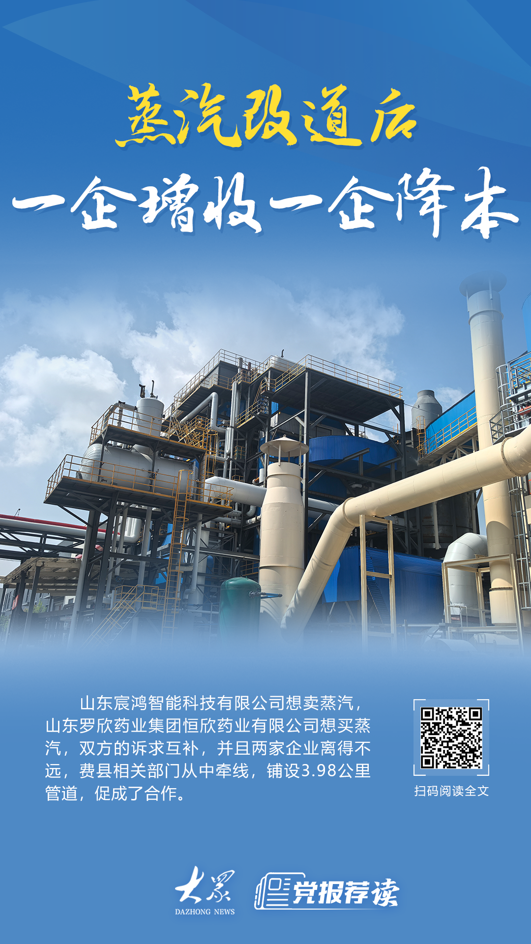 一段3.98公里的管道,改變了蒸汽的“命運”,既為宸鴻科技增加了收入,也為恒欣藥業降低了生產成本。費縣經濟開發區黨工委副書記甄永說,宸鴻科技想賣蒸汽,恒欣藥業想買蒸汽,雙方的訴求互補,并且兩家企業離得不遠,相關部門就從中間牽線,促成了這次合作。