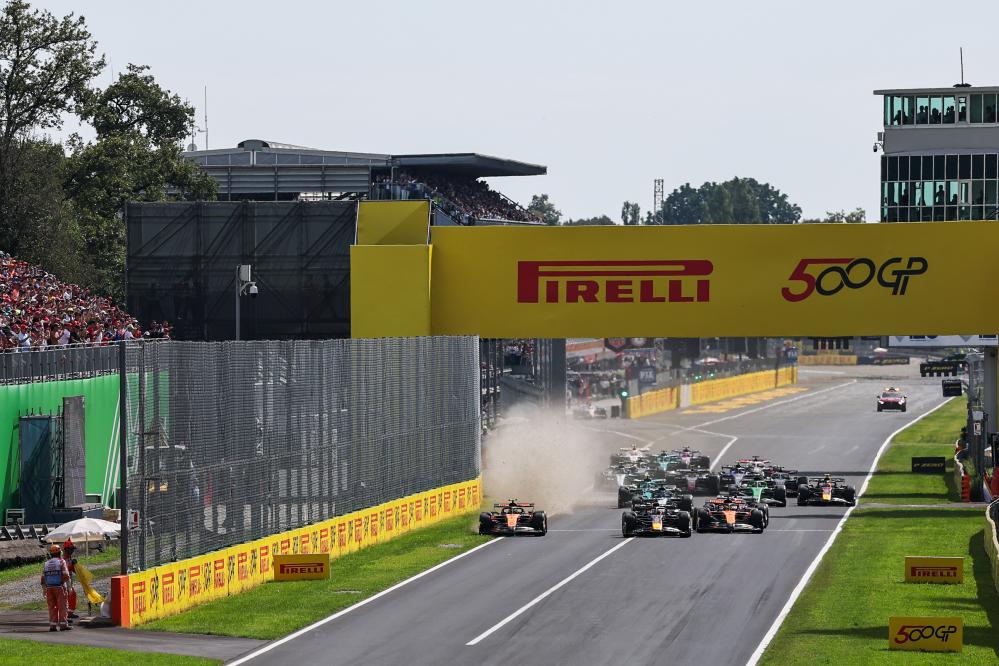 五盞紅燈熄滅后,頭排發(fā)車的維斯塔潘與諾里斯在第一個減速彎展開輪對輪角逐。維斯塔潘雖然保持領(lǐng)先,但由于在過彎時駛出了賽道,不得不把頭名讓與諾里斯。在他們身后,主場作戰(zhàn)的法拉利車手勒克萊爾超越皮亞斯特里,引起現(xiàn)場觀眾一陣歡呼,但皮亞斯特里迅速奪回位置。