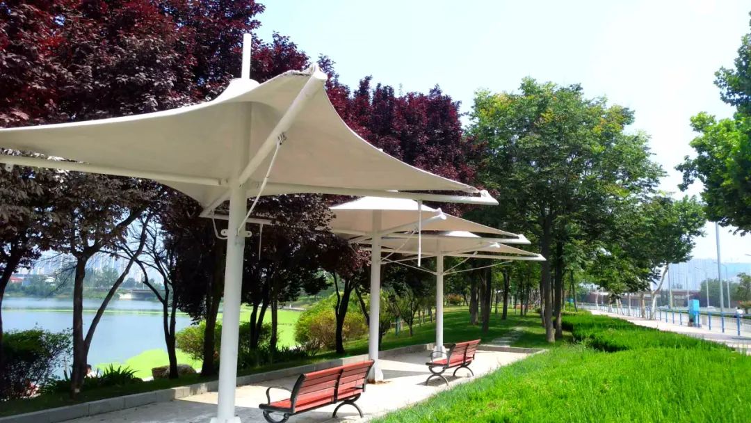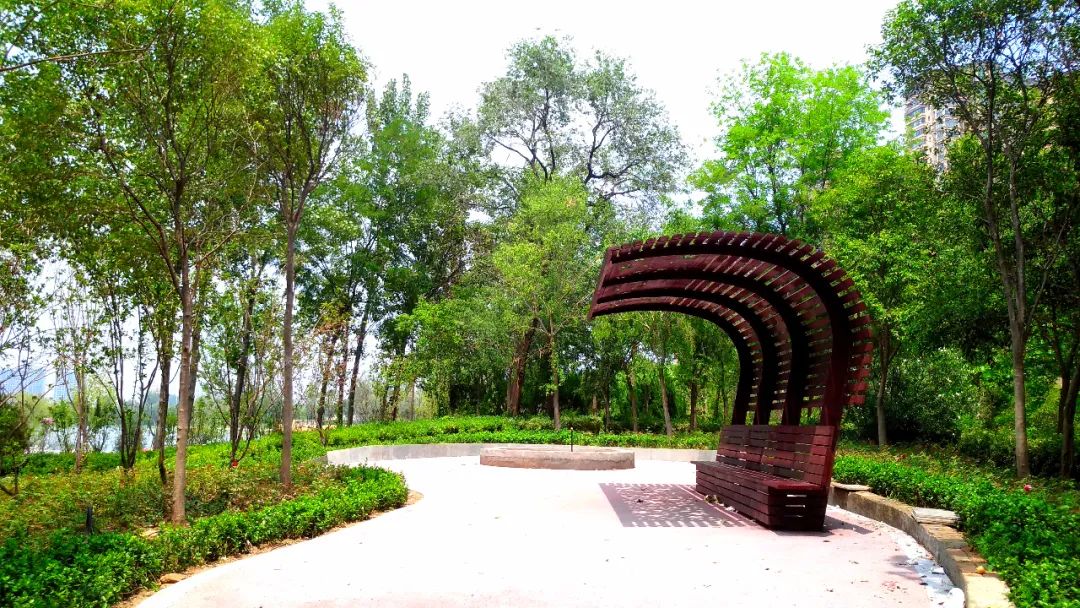 綠樹環抱中的特色造型休閑長椅,供游人休憩。常有情侶在這里談情說愛,也有游園累了的老人,在這里追憶當年。