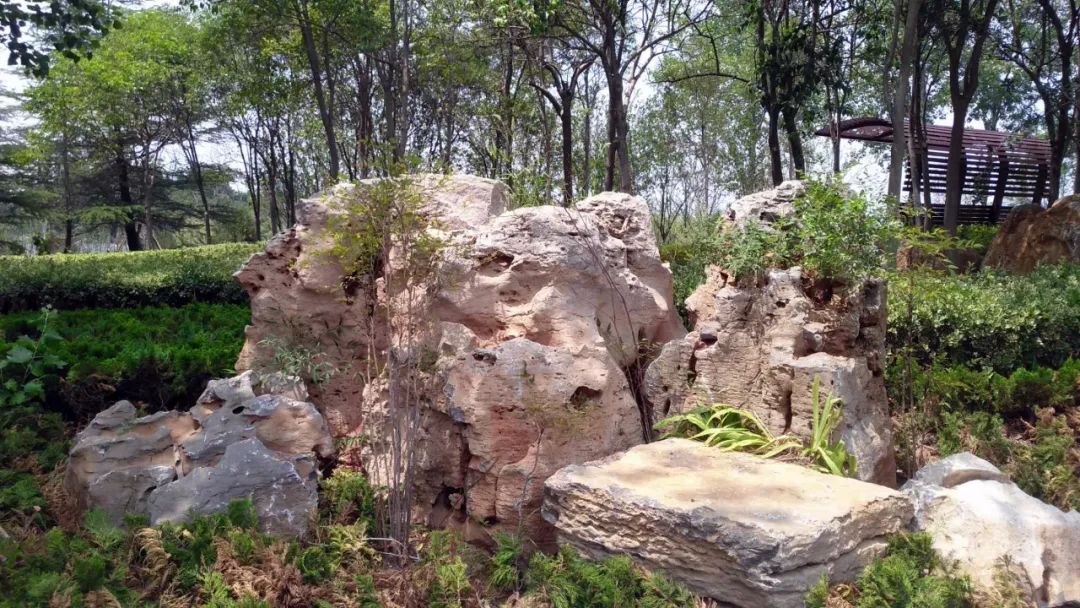 隨處可見,形態各異的山石,給公園增添了很多景致。