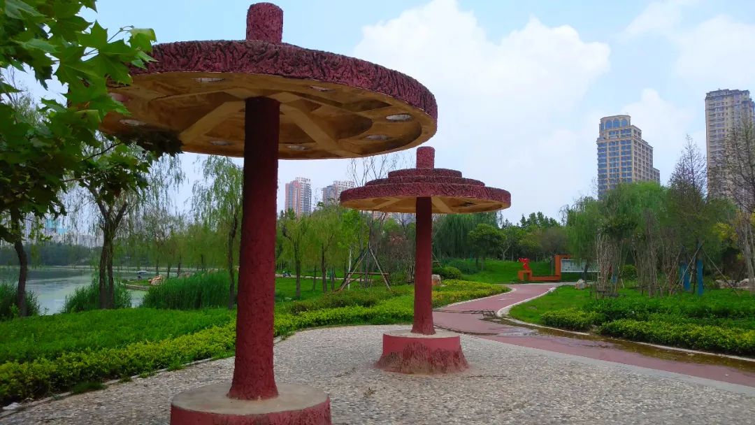 蘑菇造型的涼亭,納涼避雨都是極好的。
