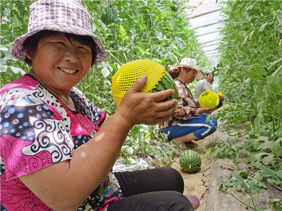 “入社后開始種植彩虹西瓜。合作社提供種子、管理、培訓(xùn)及銷售一條龍服務(wù),自己只管種,其他都由合作社去做,合作社會高于市場價進行保底銷售。”