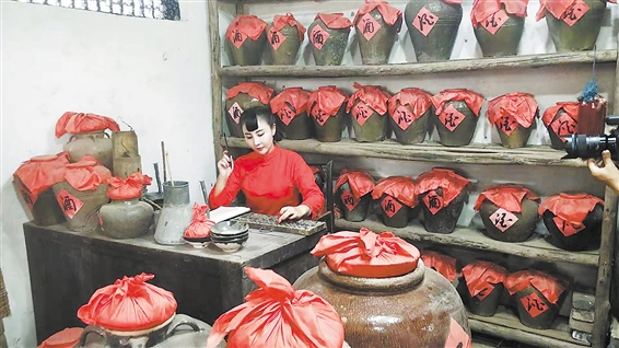 黃風嶺客棧坐落高臺,古色古香,清幽寂靜,既可接待游客,還有可品嘗的酒坊、茶坊。黃風嶺一隅,古井旁邊刻有“八個深八個淺八個不大顯”的字樣,令人頓生年代感。“這是一口古井,年積月累,井繩把井口沿磨出了二十四道溝,其中有八個深的、八個淺的、八個不大顯的。”劉峰說。