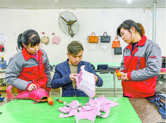 “高中沒畢業(yè)就在青島一家由韓國(guó)人開辦的皮包廠打工。經(jīng)過一番努力,他從最初的小工一路晉升為打版師、部門主管。”張仁兵說,在2018年,得知老家鼓勵(lì)返鄉(xiāng)創(chuàng)業(yè)政策,決定帶領(lǐng)老家朋友們一起創(chuàng)業(yè)。