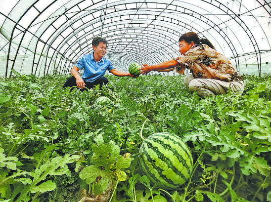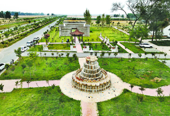 口袋公園,一座座由石碾、石磙組成的建筑高低錯落;采摘基地,一個個西瓜在瓜藤和綠葉間若隱若現;花海之中,一朵朵清香撲鼻的金銀花掛滿枝頭……仲夏時節,走進曹縣青崗集鎮江海村,青磚黛瓦馬頭墻、新村舊落各美其美,村里的主干道直通水清木秀間。古老的村莊經過再設計,變成讓城里人心向往之的“綠富美”。