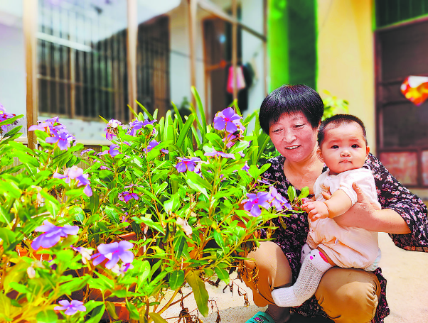 走進村民孫在清的家,干凈整潔的庭院里,她正在引逗懷里幾個月大的孫女。進入客廳,只見東側的墻上貼滿了孫子孫女的照片、獎狀和畫作,正中間的幾個大字正是這個幸福生活的寫照:家和萬事興。