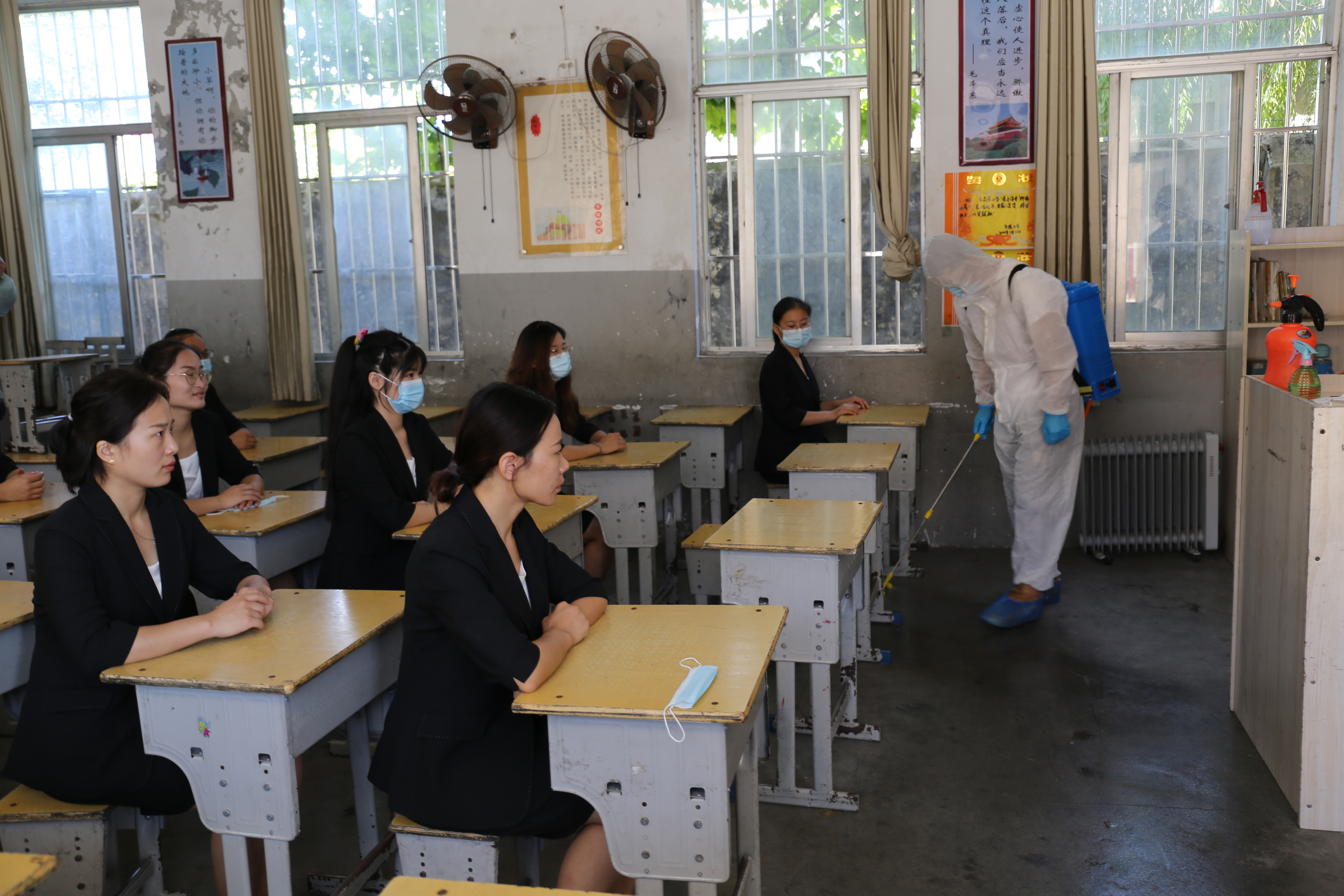圖為發(fā)現(xiàn)“發(fā)熱”學(xué)生后,消殺人員及時(shí)消毒