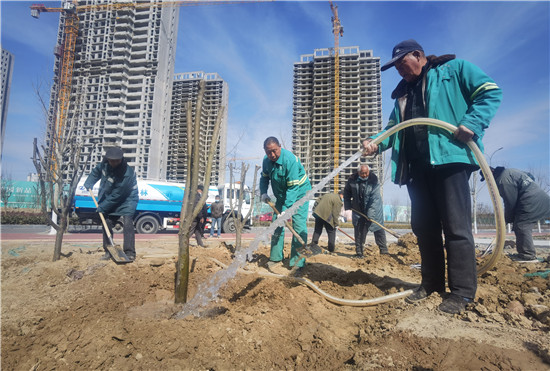 近日,市區(qū)八一東路上,市開發(fā)區(qū)園林工作人員正在補栽綠植,為城市添新綠。據(jù)了解,因長江路快速通道工程(西安路至上海路)施工需要,該路段部分綠植已被保護性移栽。其中,八一路、桂陵路至武漢路綠化用地的空地上,移栽了百日紅、紫葉李、海棠樹、石榴、木瓜等樹種近980株,獲得市民一致好評。記者 孫 濤 攝