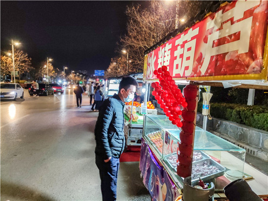 腸粉、麻辣燙、冰糖葫蘆、烤香腸……3月22日19時許,位于市區和平南路的夜市就開始熱鬧起來。在劃定的區域內,大小統一的“迷你商鋪”沿著道路兩側一字排開,燒烤、小吃、服裝、雜貨攤有序經營。“很方便,出小區就可以過來買小吃,到晚上9點還可以出來吃點夜宵、喝點飲料。”市民程先生說。