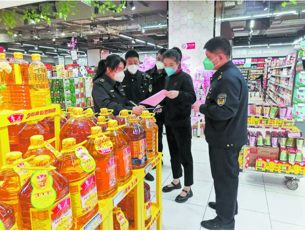 連日來,市開發區綜合監管部嚴格落實疫情防控工作要求,扎實履行綜合監管職責,全力做好疫情期間市場保價穩供工作。工作中,執法人員對轄區各大、中型超市進行全覆蓋檢查,緊盯米、面、油、乳、蛋、肉、菜等民生必需品,以及口罩、酒精、消毒液等防疫物資進行重點監管,全面調查當前各類生活必需品供應情況、庫存情況,檢查進銷貨價格等。同時提醒經營者保持價格穩定,現場指導規范明碼標價,督促經營者恪守商業道德、依法誠信經營。