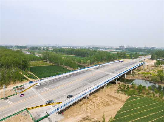 4月19日,上海南路跨萬福河大橋項(xiàng)目施工現(xiàn)場,橋梁防護(hù)欄安裝完成,雙向4車道標(biāo)識線已經(jīng)繪制完畢,寬敞的大道上,轎車、摩托車穿梭其間。該橋北起市開發(fā)區(qū)陳集鎮(zhèn),南至定陶區(qū)仿山鎮(zhèn),縱跨兩區(qū)兩鎮(zhèn)。設(shè)計(jì)線路全長838米,其中橋梁長度256米,橋?qū)?1米。目前主橋已建成并達(dá)到通車條件,南北輔道正在有序施工中。上海南路的貫通將極大方便菏澤南部片區(qū)及周邊區(qū)域人員出行,對提升城市功能、擴(kuò)展城市空間具有重要意義。