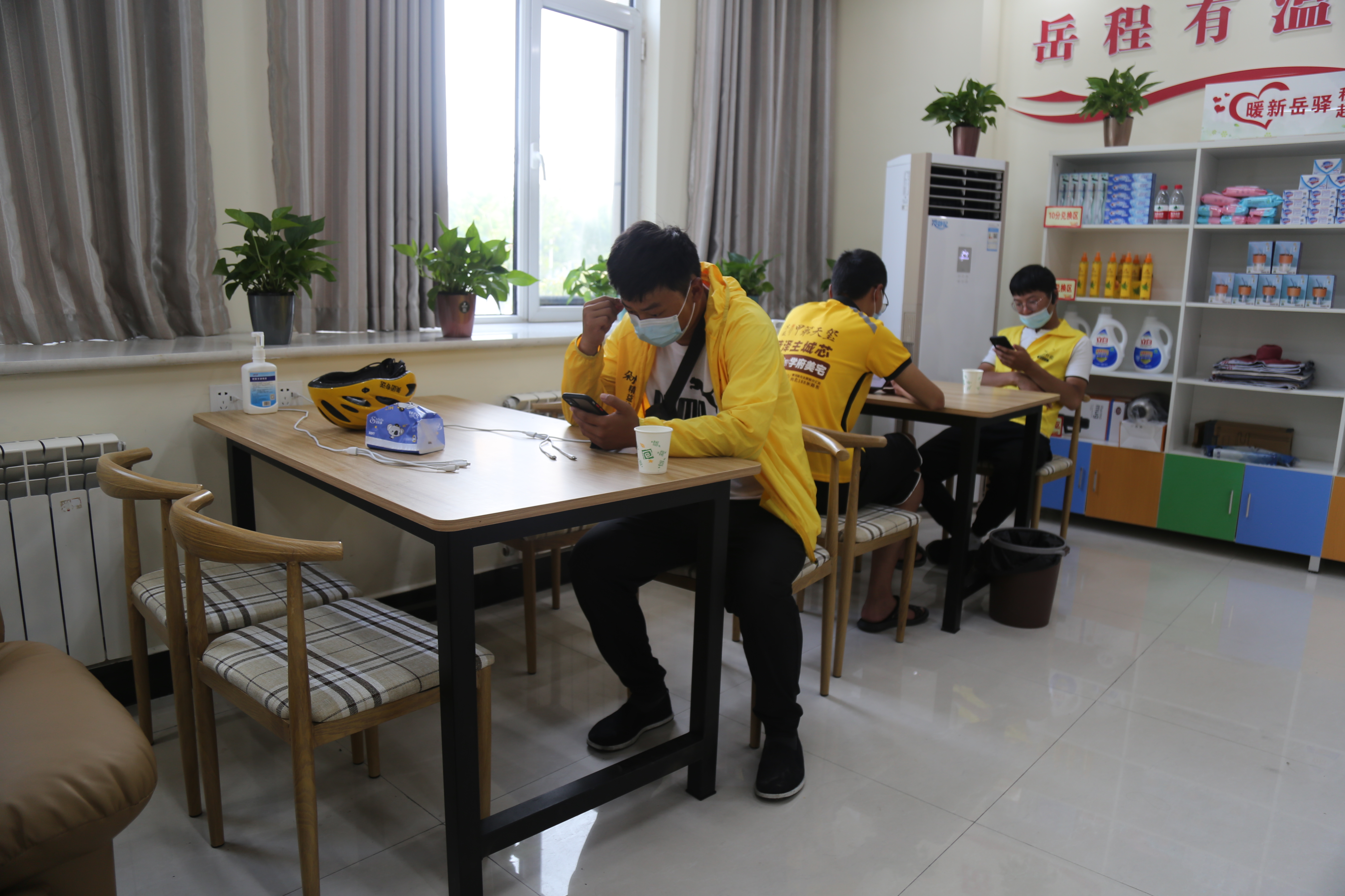 6月30日下午2時,記者來到市開發區岳程黨群服務中心的“暖心岳驛”,幾名外賣小哥正在這里結伴休息?!耙院笤僖膊挥玫教幷倚菹⒌牡胤搅?,這里就是我們的家。”外賣小哥李磊說。