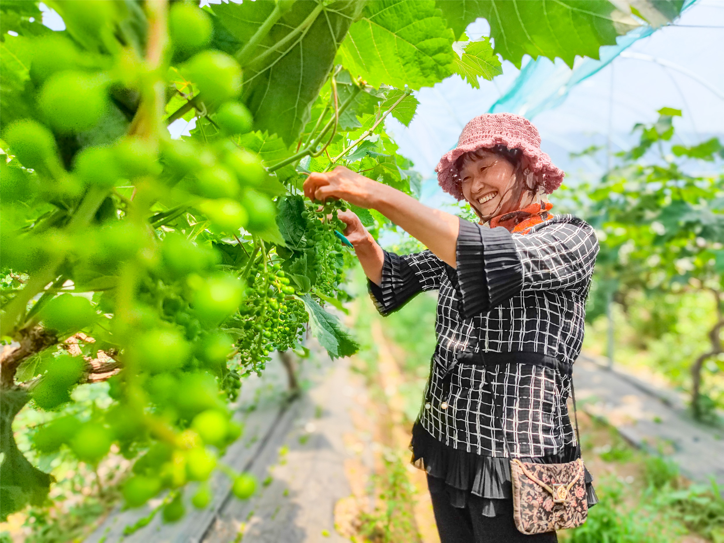 6月28日,記者在市開發(fā)區(qū)佃戶屯街道張和莊社區(qū)葡萄種植基地看到,果農(nóng)正熟練地給葡萄串疏果,為今年葡萄優(yōu)質(zhì)高產(chǎn)創(chuàng)造良好條件。據(jù)了解,疏果是葡萄果實(shí)管理的一個(gè)重要環(huán)節(jié),通過合理的疏花疏果,不僅果形好看,果粒增大,更能達(dá)到豐產(chǎn)穩(wěn)產(chǎn)和質(zhì)好品優(yōu)的目的。 記者 李保珠 攝