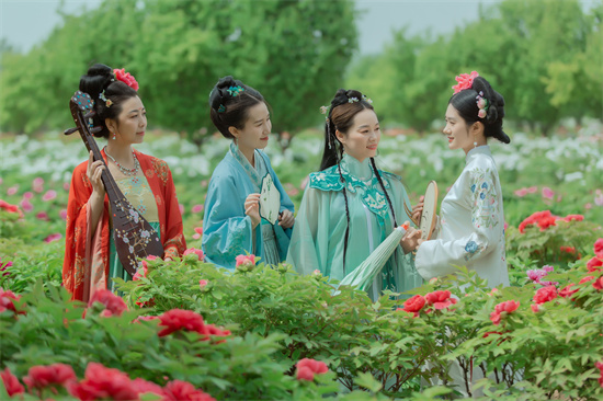 4月14日,位于牡丹區(qū)黃堽鎮(zhèn)的冠宇牡丹園內(nèi),當?shù)毓ぷ魅藛T在盛開的牡丹叢中展示唐、宋、明、清不同朝代的特色服飾,華服的國風之美與牡丹的華貴之韻相映構成了春日里一道靚麗的風景。牡丹文化旅游節(jié)期間,當?shù)貒L愛好者們通過自己的實際行動來促進菏澤牡丹文化和傳統(tǒng)文化的相融,讓各地游客感受到牡丹帶來不一樣的國風魅力。記者 李若生