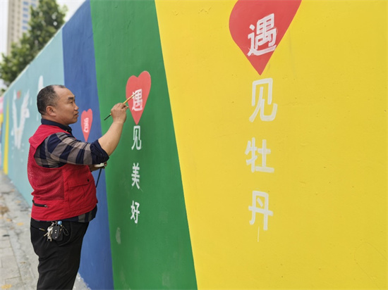 5月10日,牡丹區(qū)西城街道吳堤口社區(qū)新時代文明實踐志愿者正在中和路西段(點將臺路至貴陽路)繪制精致墻繪。今年以來,牡丹區(qū)結(jié)合“最美街巷”創(chuàng)建,對轄區(qū)內(nèi)背街小巷逐步進行提升改造,包括地下管網(wǎng)、空中管線、沿街墻面、綠化美化、路面修補、公益廣告設(shè)置等等,通過一系列的措施全面提升街巷整體環(huán)境,形成良好的社會文明新風(fēng)尚。記者 李若生 攝