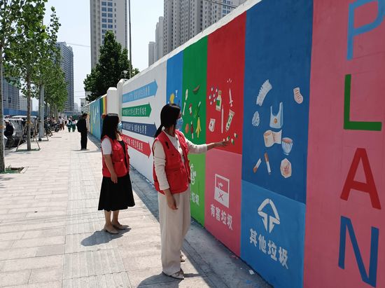 在現(xiàn)場,細(xì)心的市民發(fā)現(xiàn)由綠色的葉片、紅艷的花朵、金燦燦的花蕊構(gòu)成的一幅幅栩栩如生的牡丹花躍然墻上,展現(xiàn)出一個以牡丹為主題的繽紛畫面。藍(lán)天、白云、綠地、高樓呈現(xiàn)的現(xiàn)代化都市畫面,則呈現(xiàn)出共建一個美好家園為主題的和諧氛圍……一組組畫面直觀、生動、形象、活潑,將創(chuàng)衛(wèi)、藝術(shù)宣教等內(nèi)容有機(jī)融合為一體。