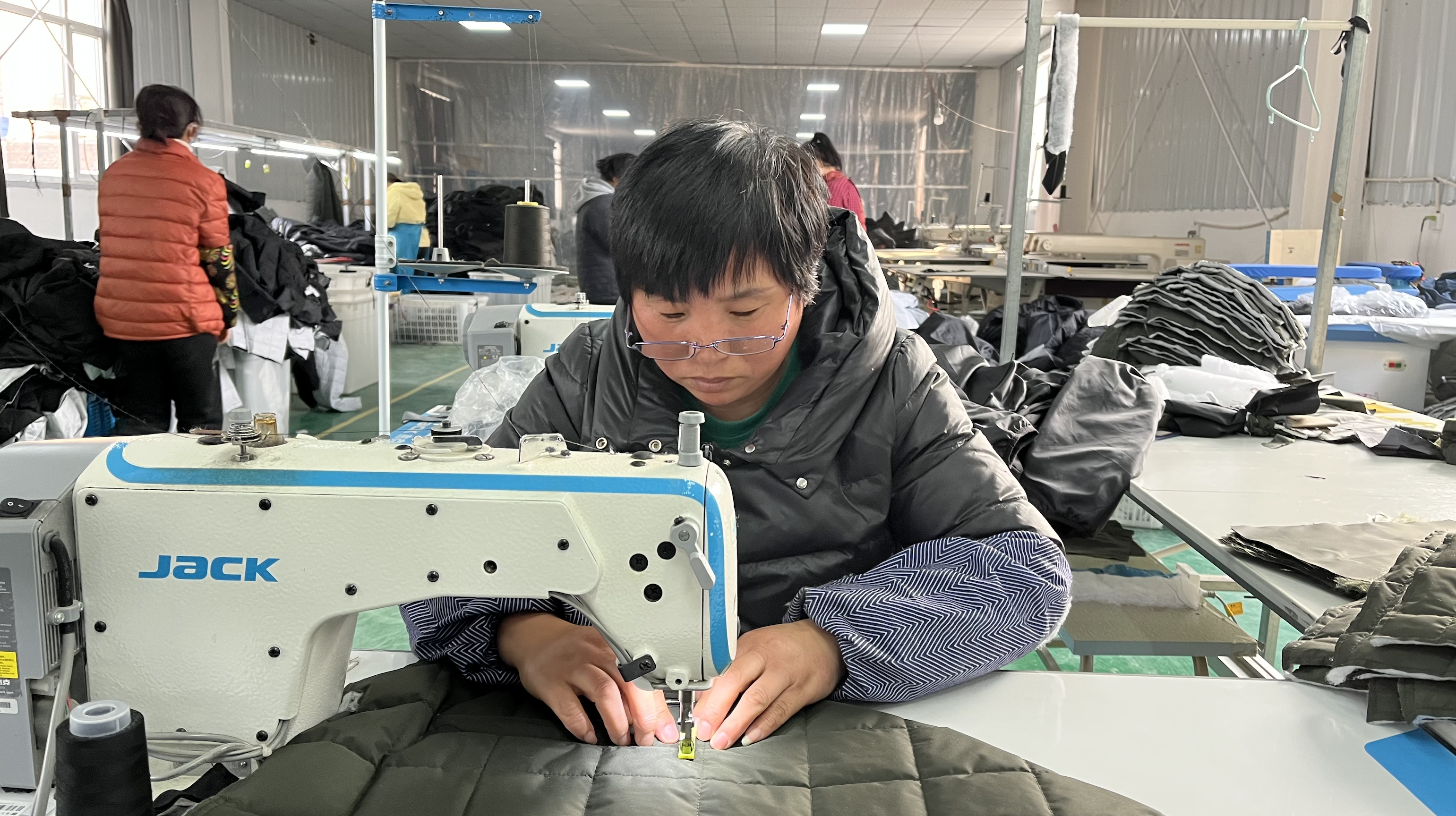 近日,在成武縣汶上集鎮(zhèn)倚德服飾生產(chǎn)車間,工人正在趕制一批服裝訂單。據(jù)了解,該車間主要生產(chǎn)羽絨夾克等服飾,產(chǎn)品遠(yuǎn)銷歐美地區(qū)。車間聘用的工人大多為當(dāng)?shù)鼐用瘢屓罕妼?shí)現(xiàn)了家門口就業(yè)增收。