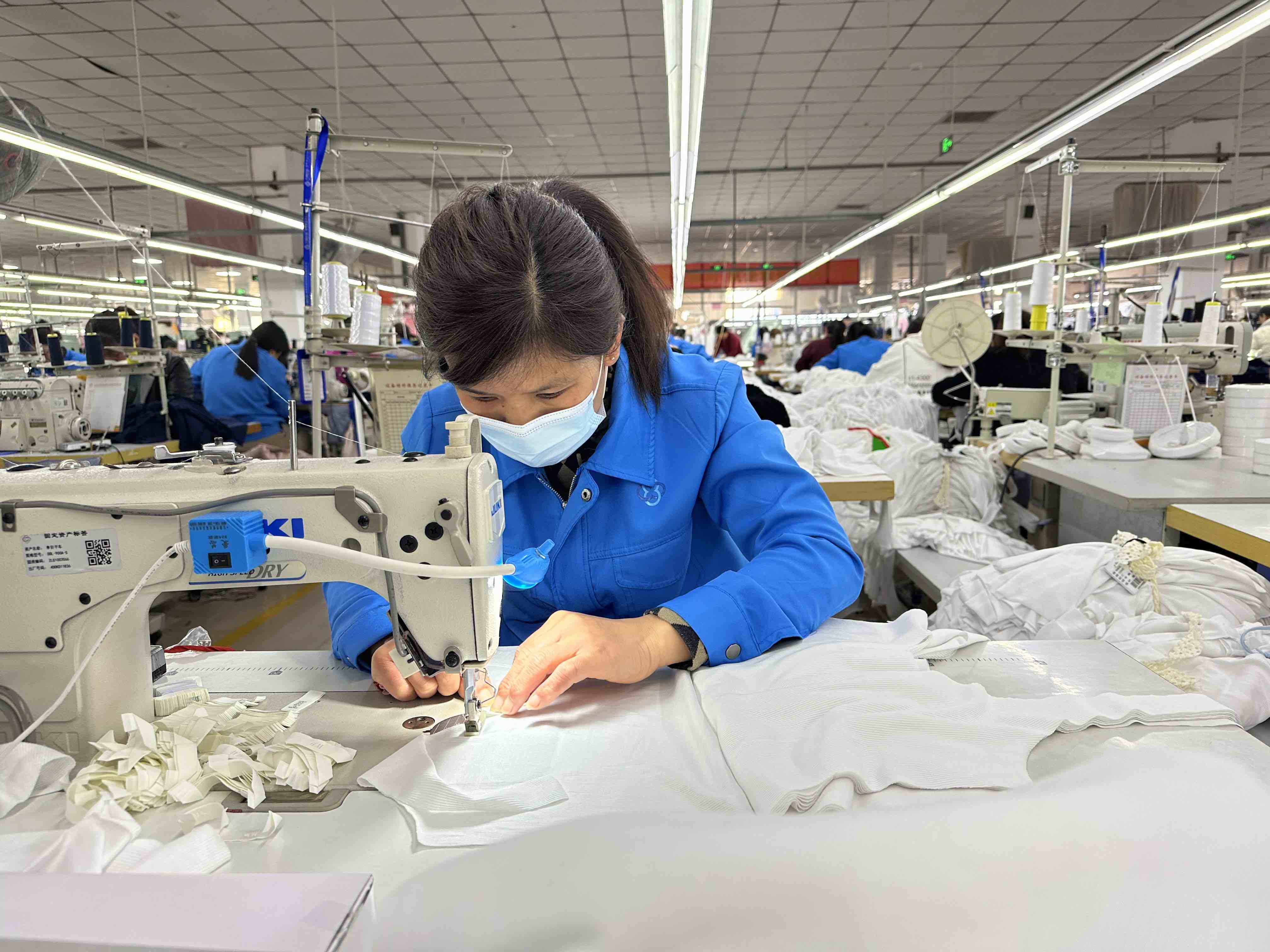 2月25日,巨野縣龍堌鎮萬鑫針織服裝有限公司生產車間,工人正在趕制訂單。據了解,該公司成立于2013年,現有員工480人、廠房8000平方米,是集生產、加工、銷售于一體的綜合性服裝公司。近年來,巨野縣立足本地實際,積極招引、培育、壯大民營企業,將工廠建到群眾“家門口”,把就業崗位帶到群眾身邊,在推動當地經濟發展的同時,讓更多老百姓實現就近就業。