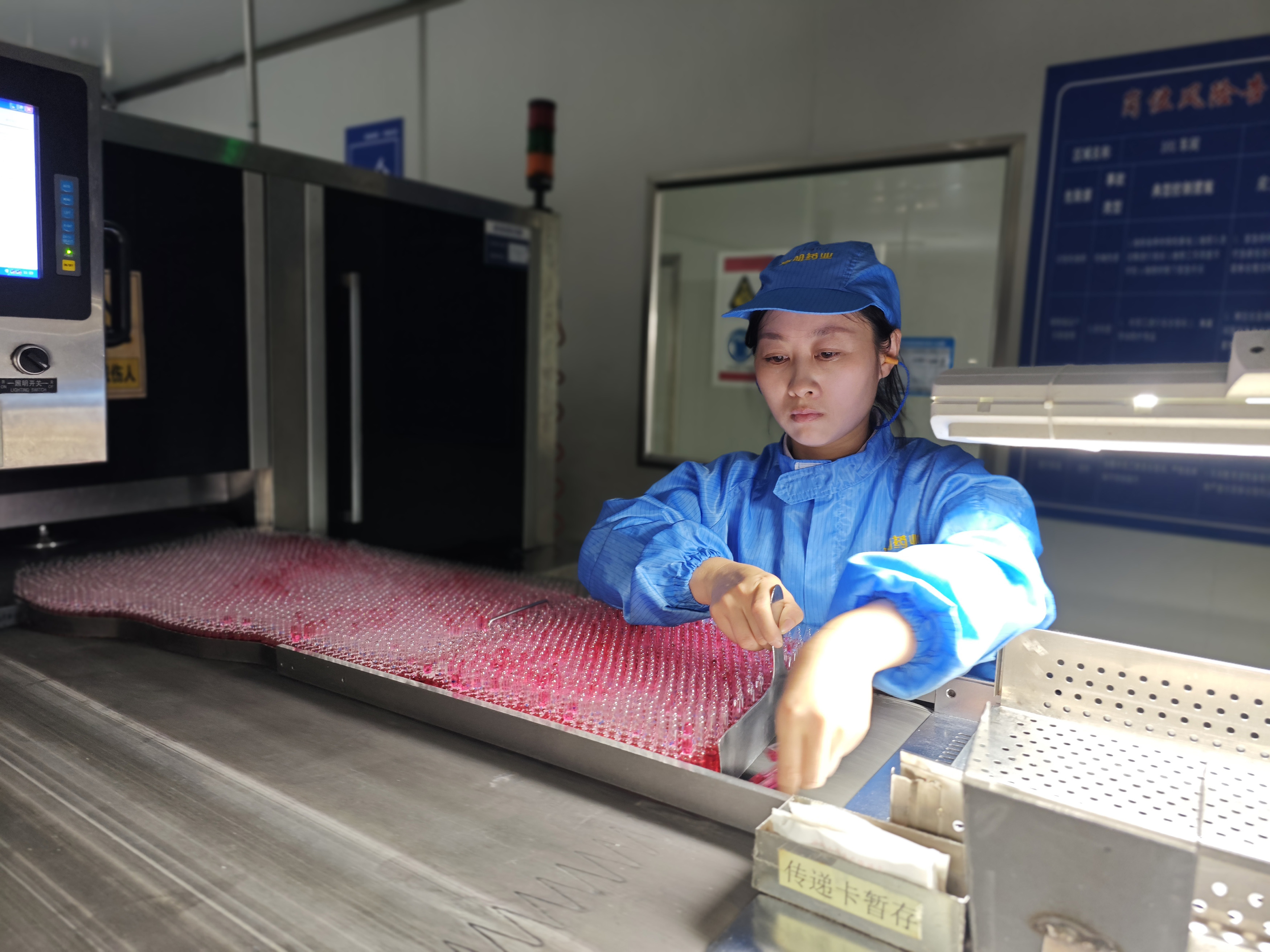 3月3日,東明縣方明藥業小容量注射劑生產車間,技術人員在流水線上全力保障藥劑生產。方明藥業主要生產小容量注射劑、片劑、硬膠囊劑等,目前有59個小容量注射劑產品,年生產能力達15億支。下一步,方明藥業將加快小容量注射劑項目建設,全力推進急救藥、外用凝膠等特色型仿制藥和改良型新制劑的研發生產,促進企業高質量發展。