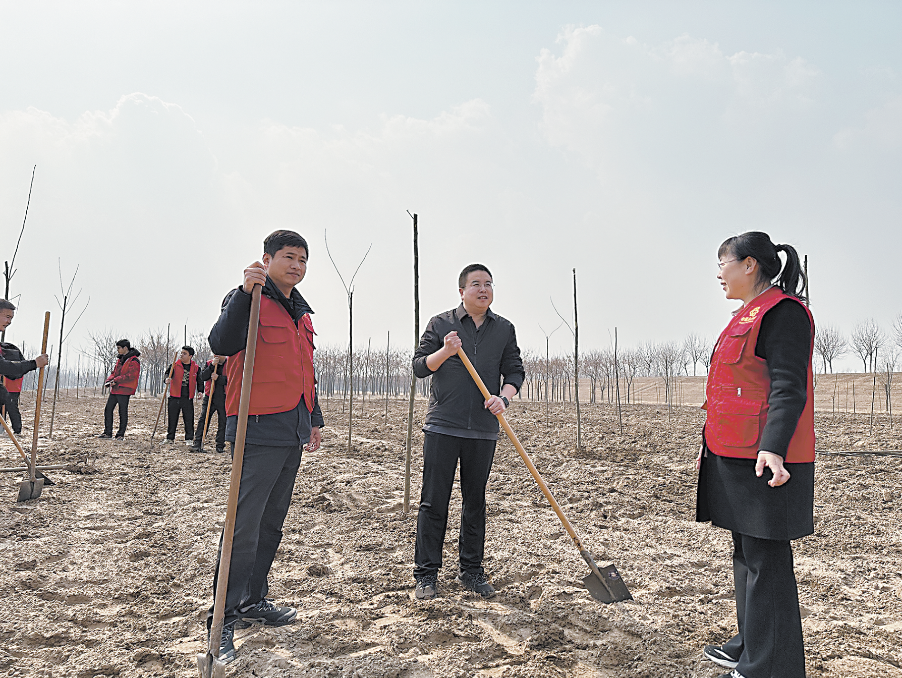 近日,鄆城黃河河務局攜手張魯集鎮,組織30多名青年干部志愿者,在黃河大堤張魯集鎮薛河口段開展“綠滿鄆城 植樹添彩”植樹節活動?;顒又?,在鄆城縣林業局專家明廣增的悉心指導下,志愿者迅速投身到勞動中,現場呈現出一派熱火朝天的景象,栽植樹苗300余棵。